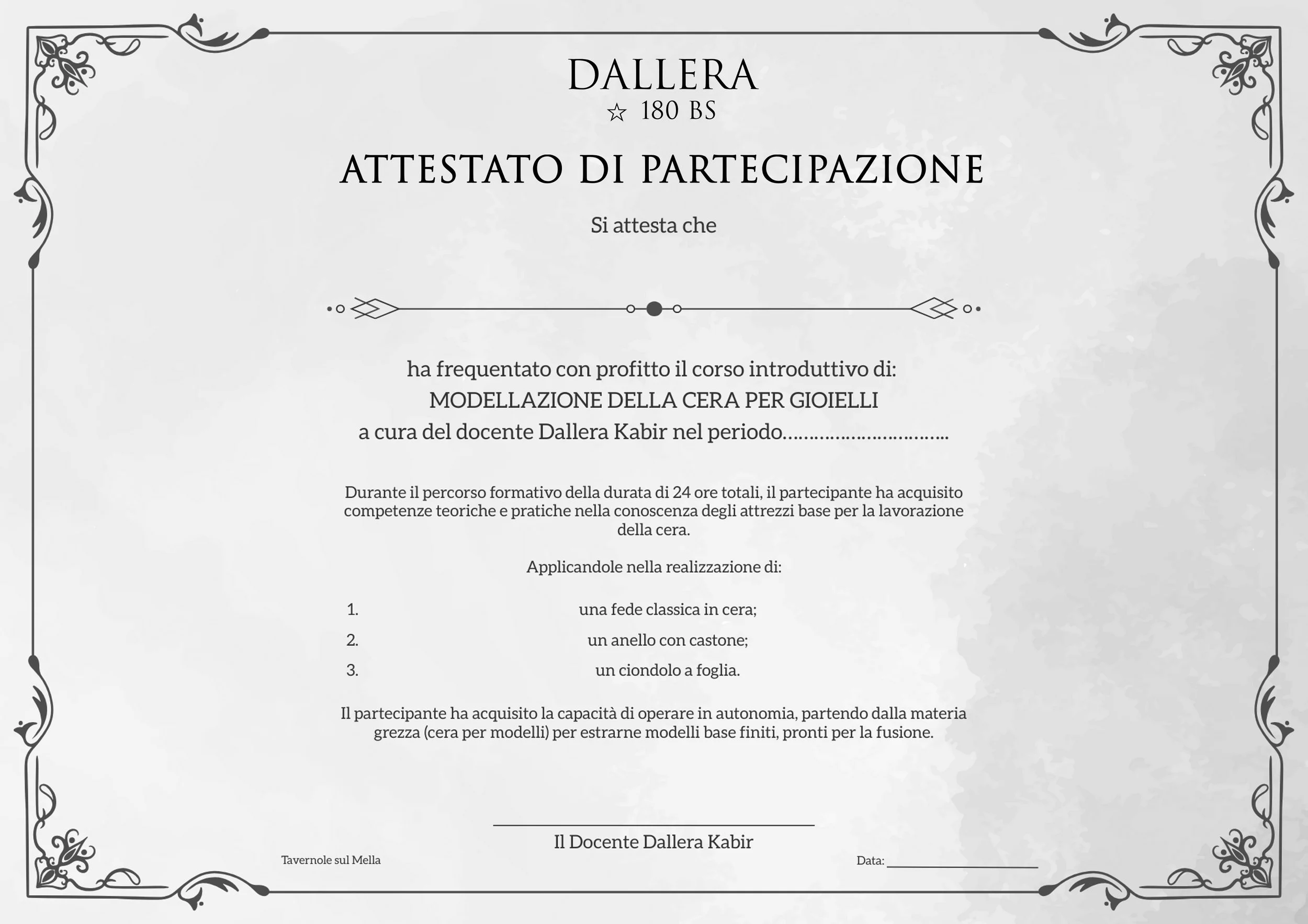 A fine corso ti rilascerò un attestato di partecipazione dove saranno elencate: